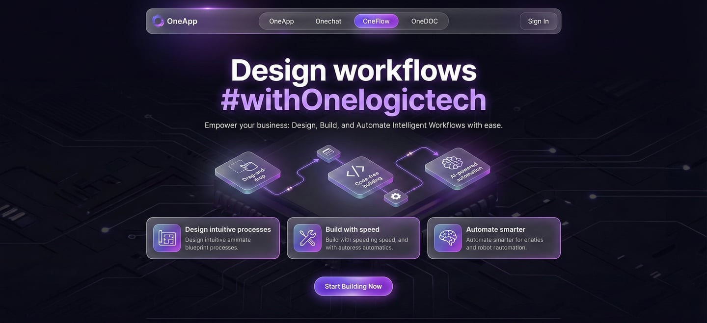 OneLogic Business process management system. is the intelligent core that unifies OneChat, OneApp, OneEngine, OneFlow, and OneDoc into a single, automated command center—turning fragmented tasks into seamless workflows and manual data into actionable intelligence.