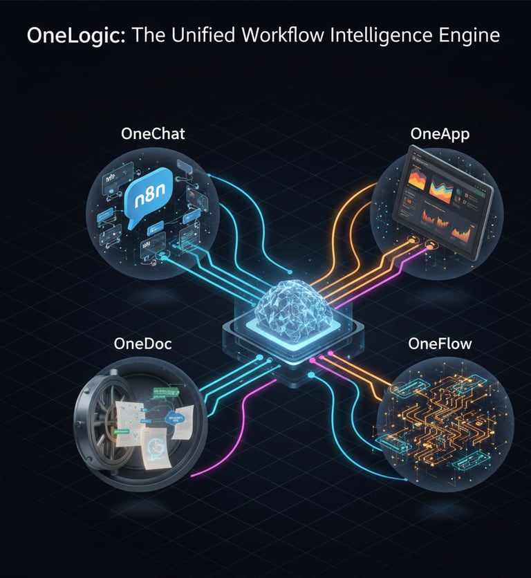 App sprawl, data silos, and manual workflows stifle progress. The OneLogic Engine is here to unify your automation with a single intelligent core, orchestrating actions seamlessly across chat, apps, workflows, and documents to transform raw data into decisive, automated results. We turn operational complexity into streamlined intelligence. Stop managing pieces—start commanding your entire business.